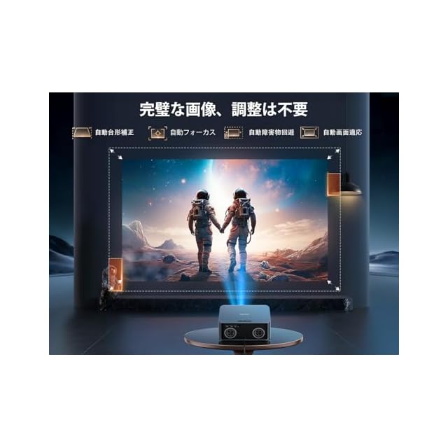 【AI技術 | オートフォーカス | 自動台形補正 | 100%-50%ズーム】スマートプロジェクター X9には最先端のAI技術を搭載しており、「オートフォーカス」「自動台形補正」「自動スクリーン調整」「自動障害物回避」ではの利便性も大きな魅力です。AI技術が内部に組み込まれており、使用するたびに環境に合わせた最適化が行われます。どんな部屋の形状や、スクリーンの位置に関わらず、AIプロジェクターが自動的に調整し、常に最高の視覚体験を提供します。映画のシーンが目の前で生き生きと再現され、まるで映画館にいるかのような没入感を味わうことができます。さらに、ズーム機能により、距離に制限されることなく映画を鑑賞でき、適切な視聴サイズに調整できます。