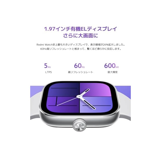 シャオミ(Xiaomi) スマートウォッチ Redmi Watch 4 1.97インチ超大型ディスプレイ 20日間のバッテリー持続時間 Bluetooth 通話対応 150種類スポーツモード 回転式クラウン Alexa対応 GPS内蔵 シルバーグレー