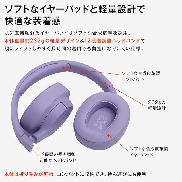 ソフトなイヤーパッドと約232gの軽量設計で快適な装着感