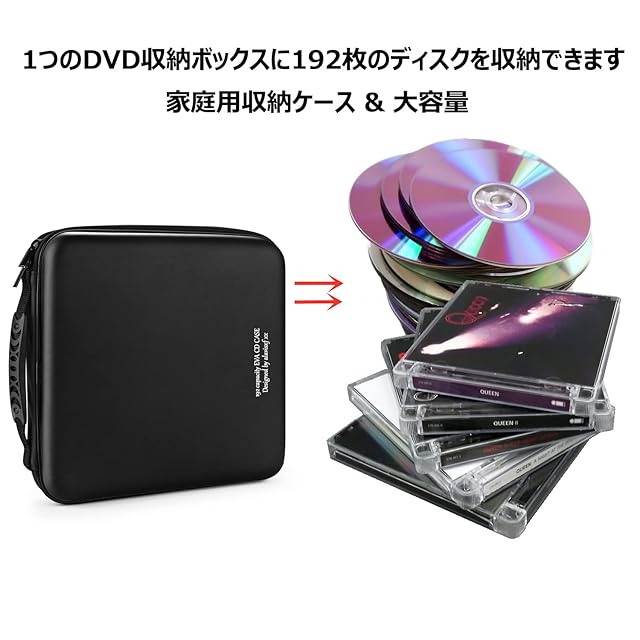 商品名:LIOVODE 192枚収納 CDケースポータブルEVA blu-ray ディスク収納ケース 大容量 DVD/VCD 収納 (192枚, ブラック192)