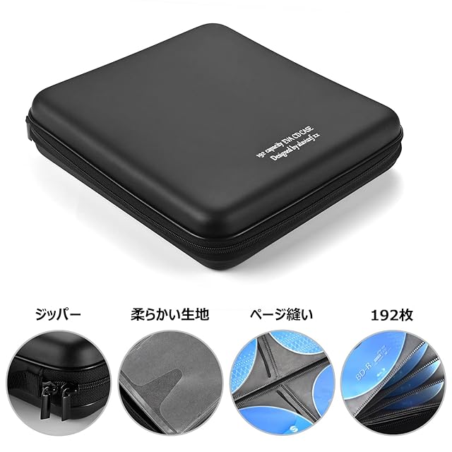【高品質】EVA +不織布フィルム製。厚手・適度な硬度のカバー、スリムなジッパー付き。防水・耐摩耗性。192枚のディスクを収納可能。