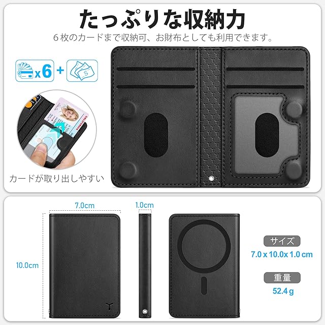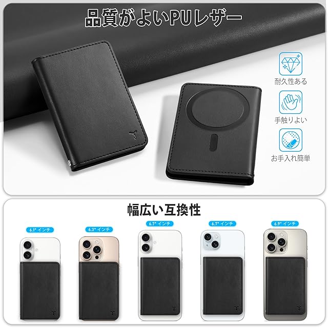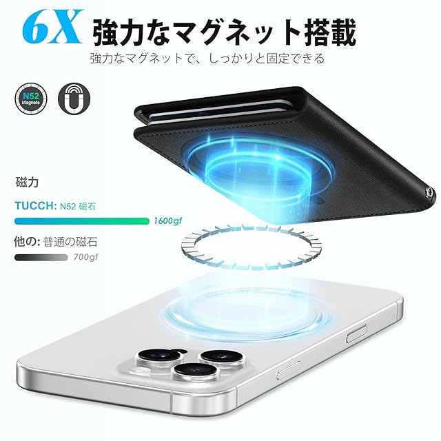 商品名:[TUCCH] スマホカードケース 磁気吸着 6枚カード収納 [RFIDブロッキング] PU合皮 磁気ウォレットケース iPhone 16/16Plus/16Pro/16Pro Max/15/14/13/12シリーズ対応 ブラック