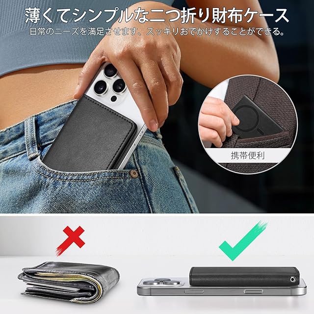 【幅広い互換性】このスマホカードケースはiPhone16/16 Plus/16 Pro/16 Pro Max/iPhone15/15 Plus/15 Pro/15 Pro Max/iPhone 14/14 Plus/14 Pro/14 Pro Max/iPhone13/13 Pro/13 Pro Max/iPhone12/12 Pro/iPhone 12 Pro Maxに対応します。ご注意:本商品はただ磁力吸着機能搭載のスマホやスマホケースだけに対応できます、(iPhone11/11Pro/11 Pro Max/7/8/SE2/SE3/XS Max/Xs/XRに対応しません)。ご購入前に、対応機種をしっかりとチェックしてください。