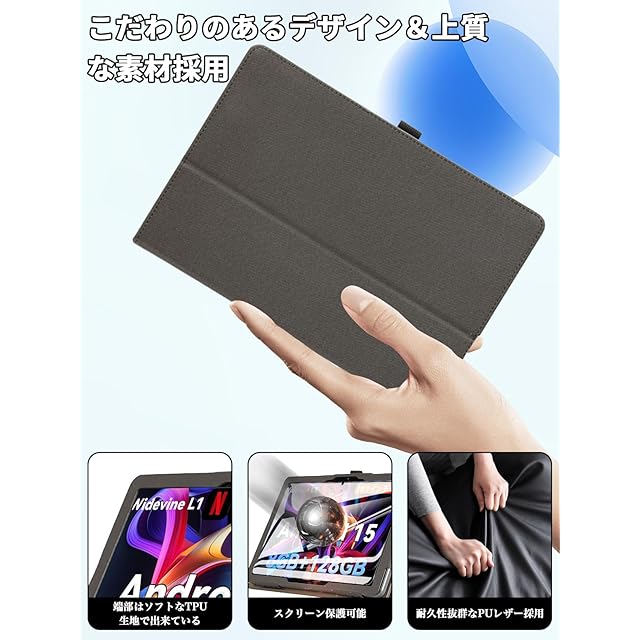 【上質PU素材採用】カバー表面は手触りが良く高級感のあふれる耐久性に優れた高級PUレザーで、バックケースは耐衝撃性の高く頑丈なTPU+PC素材を採用しており、裏地材質は液晶表面に優しいマイクロファイバーの仕上がりで、タブレット本体をやわらかく包み込みながら、不意による落下の衝撃から緩和できて、タブレットに最高の保護力を提供してくれます。