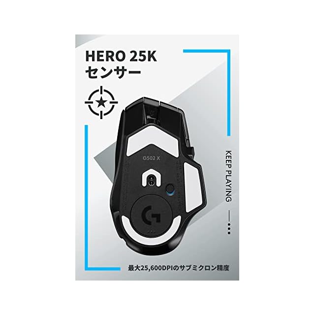 商品名:Logicool G ゲーミングマウス G502 X LIGHTSPEED ワイヤレス マウス G502XWL-CRBK LIGHTFORCE ハイブリッドスイッチ HERO 25K センサー 13個プログラムボタン USB Type-C 充電 POWERPLAY 対応 G502X ブラック PC windows mac 国内正規品 【 ファイナルファンタジー XIV 推奨モデル 】