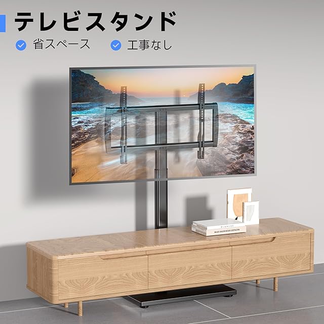 【工事なし】付必要な部品が全部揃っていて、日本語取扱説明書も付属され、壁に穴を開ける必要はありません。テレビスタンドを簡単に取り付けられます。※ナット・ネジ類などの備品は備えていますが、万が一必要な部品が不足していた場合はカスタマーサービスにご連絡くださいようお願いいたいします。
