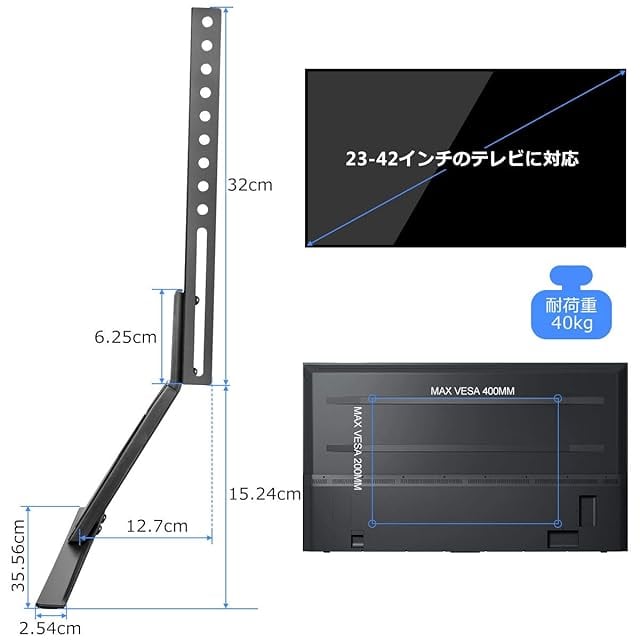商品名:suptek ユニバーサルテレビスタンド テレビテーブルトップスタンド テレビスタンドベース 汎用テレビ台座 23~42インチ対応 高さ調節可能 耐荷重40kg VESA200x400mm ML1732