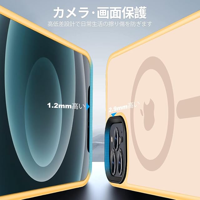 アイホン13 Proの曲線に従って高低差を設計。液晶画面より1.2mm高く、カメラレンズより2.9mm高く、机などの平面に置いても傷付く心配はない。※本製品は6.1インチしか対応できないですから、ご購入する前サイズを確認ください。