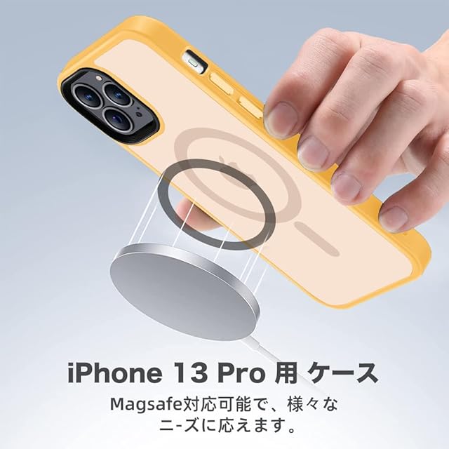 商品名:【米軍規格・MagSafe対応】Gtsoho iPhone 13 Pro 用 ケース 半透明 米軍規格 耐衝撃 マグネット搭載 マット感 黄ばみなし ストラップホール付き マグセーフ対応 ワイアレス充電対応 オレンジ