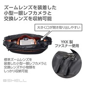 水や汚れに強くしなやかな特殊コーティング生地を採用した超軽量カメラショルダーバッグ。U型フォルムが身体にしっくりフィット。