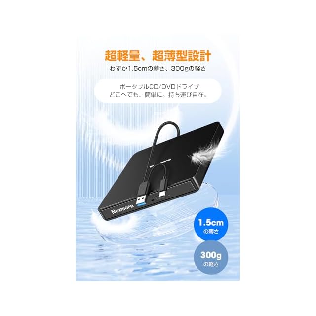 ✅【携帯便利・いつでもどこでも】:便利で機能的な光ドライブをお探しですか?当社の外付け光ドライブは携帯性と実用性を重視した設計。わずか1.5cmの厚さと300gの重量で、持ち運びが容易。家庭、オフィス、旅行先での使用に最適で、いつでもどこでも効率的なデータ処理を楽しめます。