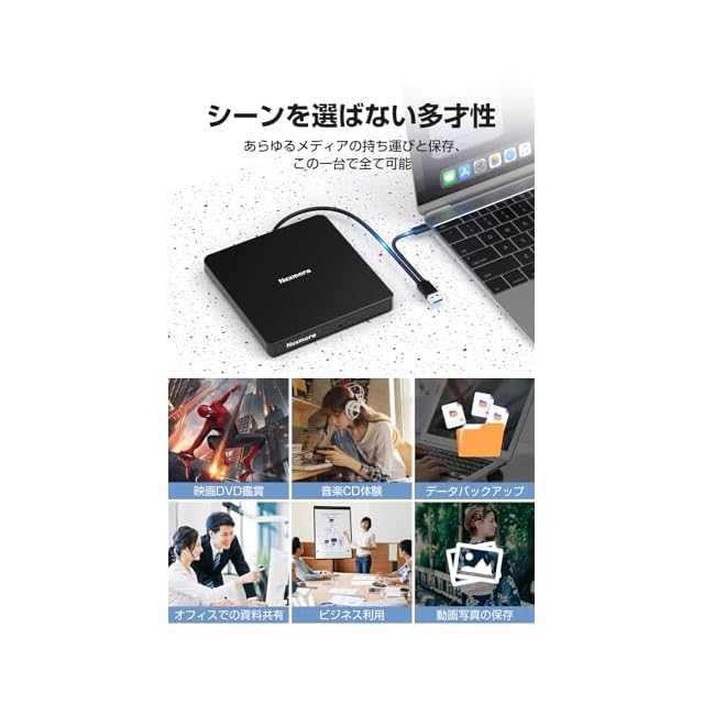 ✅【幅広いメディア対応】この 光学ドライブ は、様々なタイプのディスクに対応しています。CD/DVD-ROM、CD-R/RW、DVD±R/RWなど、安定した読み書き性能を提供します。M-DISC対応で、大切なデータの保存にも安心。その超薄型、超軽量設計で、携帯性に優れ、出張や旅行に最適な cdプレーヤー です。