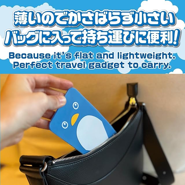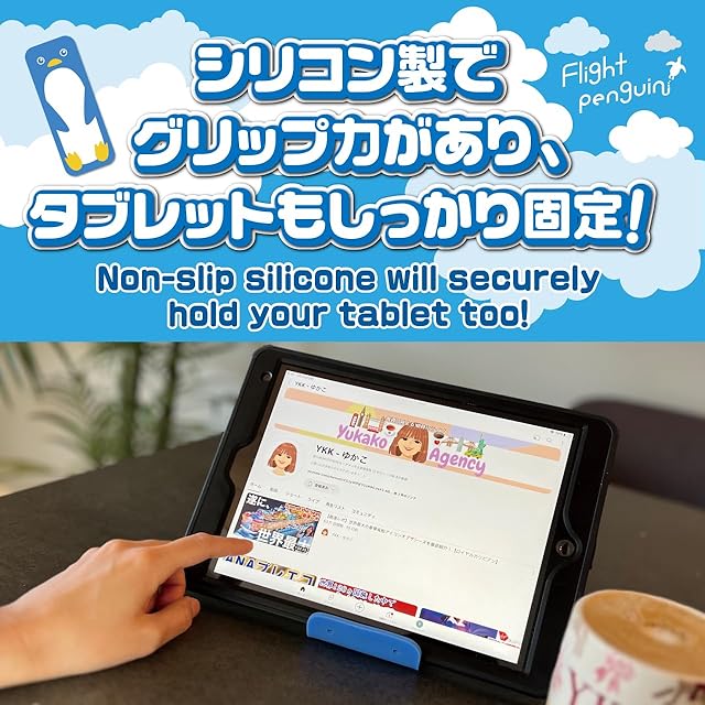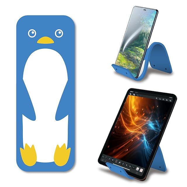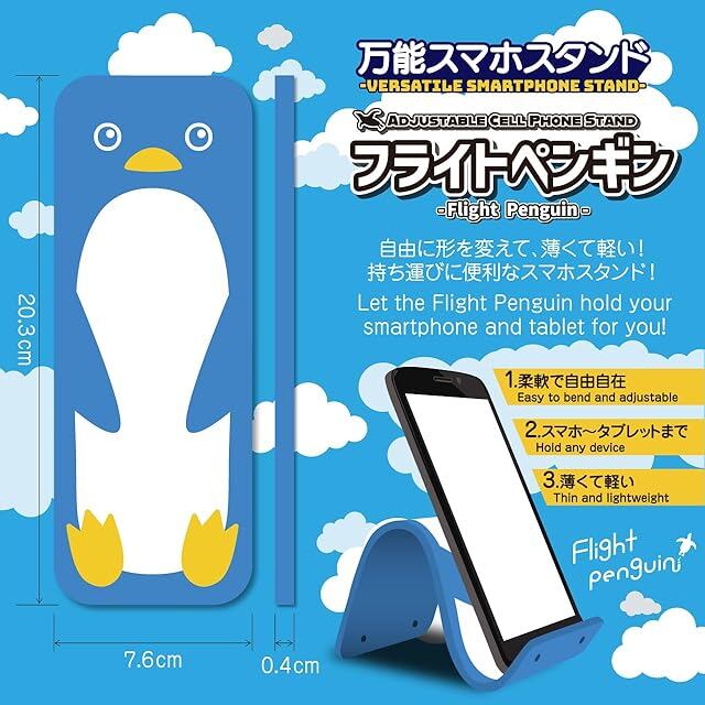 柔らかいシリコン製なので自由自在に折り曲げて角度を変えられる! スマホやタブレットを固定できる万能スタンド! * 商品本体サイズ(概寸)幅7.5cm×長さ20.2cm×厚さ0.4cm 重さ: 75g 色:水色(ペンギン) * 商品数: 一枚 * フライトペンギンは柔らかいシリコン製でグリップ力があるため、スマホやタブレットをしっかりと固定し、動画視聴やビデオ通話等に最適です。 * 薄くて軽く持ち運びに便利なため、外出先や食事中に子供にスマホを見せる時にサッと取り出してスマホスタンドとして使えます。 * ペンギンの可愛いデザインと、爽やかな水色カラーがあなたを癒します。 * 薄くて柔らかいシリコン製のため、飛行機や新幹線のトレイテーブルに挟んで使うこともでき、高い目線でスマホを固定するので動画を長時間閲覧しても首が疲れません。 * 防水のため水洗いができ、汚れてもお手入れが簡単です。