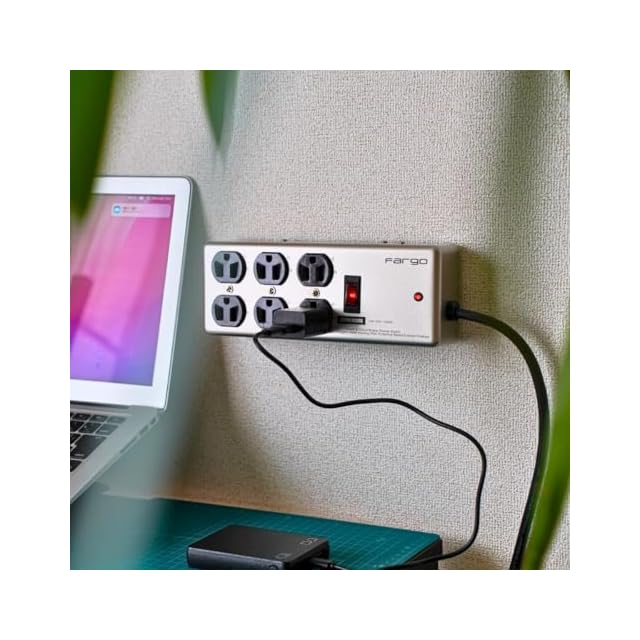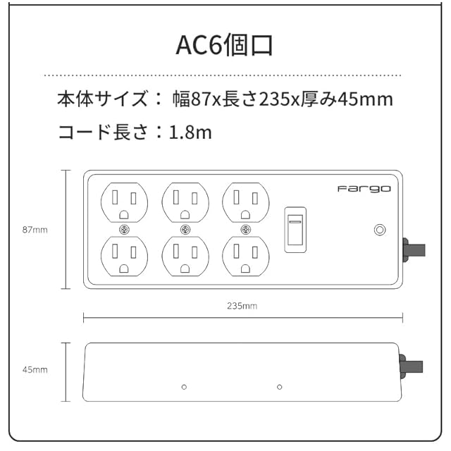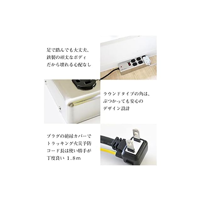 商品名:Fargo STEEL TAP 電源タップ スチール製 3ピン対応 アース線付き コード 壁掛け 固定 (シルバー, 6個口1.8m)
