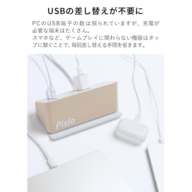 商品名:Pixio PXAUTCBE ベージュ AC&USB TAP COMPACT 電源タップ 卓上 デスク コンセント USB Type-C Type-A 充電器 充電ステーション おしゃれ インテリア ゲーミング