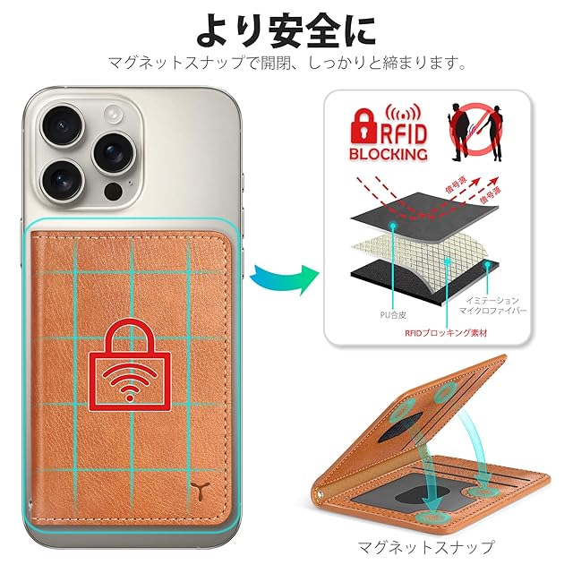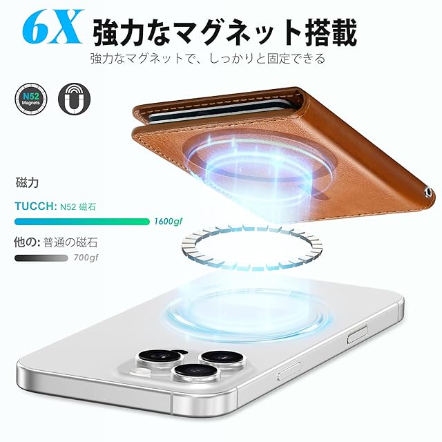 商品名:[TUCCH] スマホカードケース 磁気吸着 6枚カード収納 [RFIDブロッキング] PU合皮 磁気ウォレットケース iPhone 16/16Plus/16Pro/16Pro Max/15/14/13/12シリーズ対応 ライトブラウン
