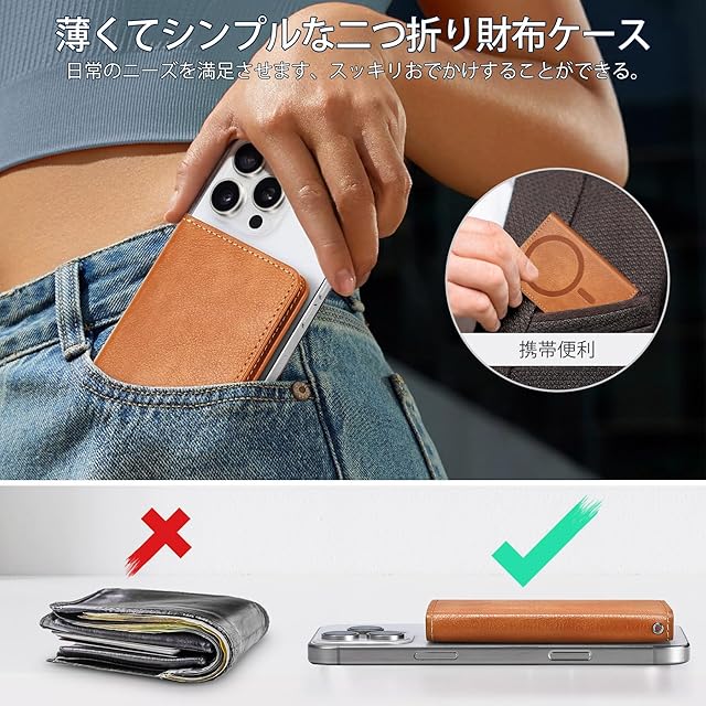 【幅広い互換性】このスマホカードケースはiPhone16/16 Plus/16 Pro/16 Pro Max/iPhone15/15 Plus/15 Pro/15 Pro Max/iPhone 14/14 Plus/14 Pro/14 Pro Max/iPhone13/13 Pro/13 Pro Max/iPhone12/12 Pro/iPhone 12 Pro Maxに対応します。ご注意:本商品はただ磁力吸着機能搭載のスマホやスマホケースだけに対応できます、(iPhone11/11Pro/11 Pro Max/7/8/SE2/SE3/XS Max/Xs/XRに対応しません)。ご購入前に、対応機種をしっかりとチェックしてください。