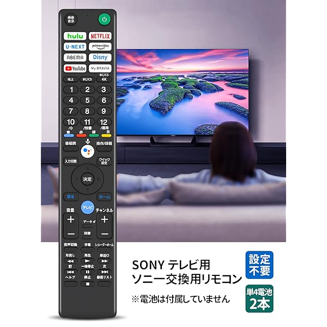 【設定不要】複雑な信号設定が不要、単四乾電池2本を入れるだけですぐに使えます。子供からお年寄までも液晶テレビの電源ONN/OFFや音量調整、入力切替、チャンネルの変更などすべての操作が簡単にアクセスできます。※電池は付属していません。