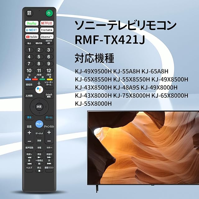 商品名:テレビリモコン RMF-TX421J for ソニー ブラビア用リモコン KJ-49X9500H KJ-55A8H KJ-65A8H KJ-65X8550H KJ-55X8550H KJ-49X8500H KJ-43X8500H KJ-48A9S KJ-49X8000H KJ-43X8000H KJ-75X8000H KJ-65X8000HKJ-55X8000H用(音声機能なし)