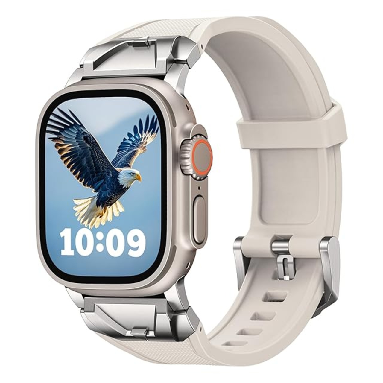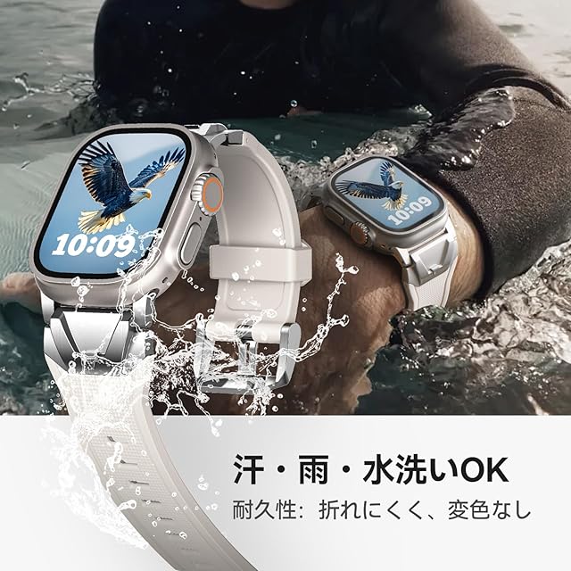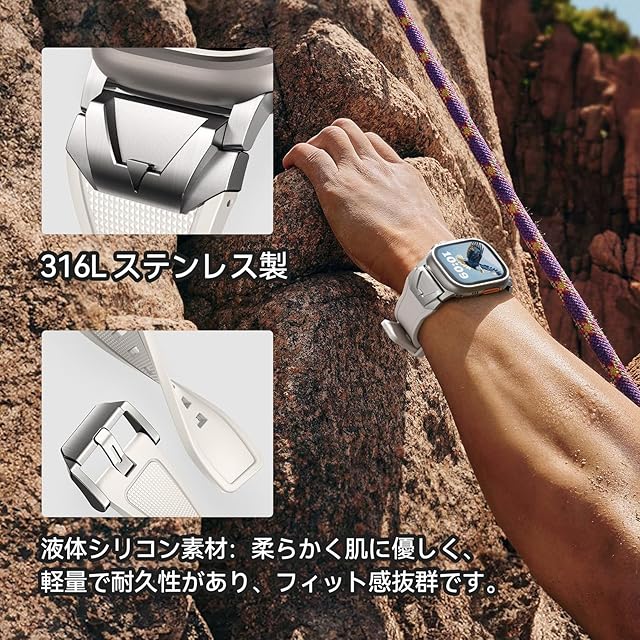 【対応機種】本製品「アップルウォッチ ステンレス+液态硅胶(リキッドシリコーン)バンド」は、コンパチブルApple Watch ウルトラ2/1 およびSeries 10/9/8/7/6/5/4/SE2/SE/6/5/4/3/2/1に対応しており。対応する手首サイズは135mmから220mmです。ご注意:購入前に、Watchのモデルとサイズを確認してください。