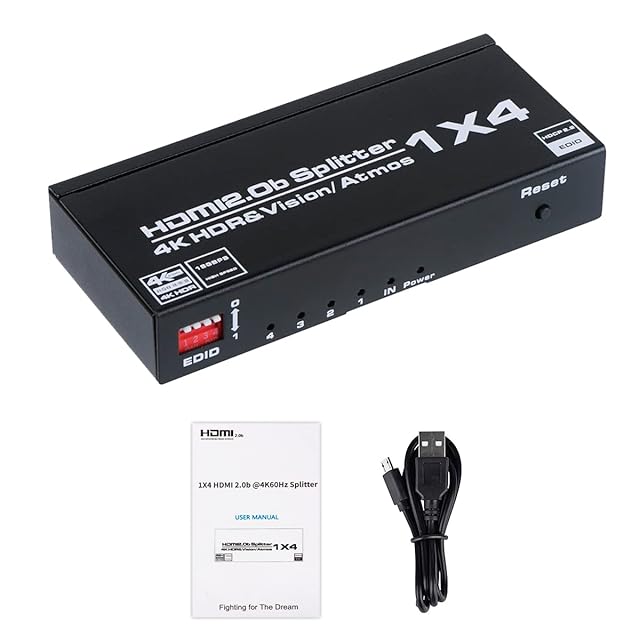 【長距離トランスミッション】HDMI分配器1x4の最大ボーレートは18.2Gbpsです。 AWG26 HDMI標準ケーブルを使用すると、解像度が1080p入力で最大50フィート(15m)、出力が最大82フィート(25m)の場合。 解像度が4Kの場合、入力-最大26ft(8m)、出力-最大50ft(15m)。