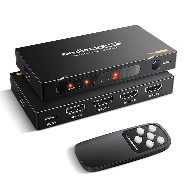 avedio links HDMI 切替器 8K@60Hz HDMI切り替え器 5入力1出力 4K@120Hz HDMI 2.1 セレクター 自動/手動切替機能 UHD、3D、HDR 10、HDCP2.3、48Gbps HDMI HDMI ハブ 拡張 リモート付き | TREND DESIGN 家電専門店