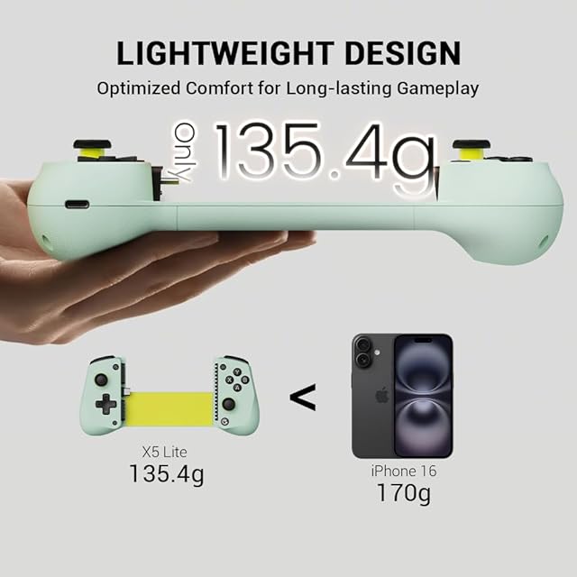 【パススルー充電&軽量】パススルー充電により、デバイスを充電しながらゲームを続けることができ、ゲームプレイを中断することなくプレイできます。X5 Liteはわずか135.4gの軽量設計で、人間工学に基づいてレーザー刻印されたテクスチャグリップにより、長時間のゲームプレイでも安全で快適な装着感を実現します。