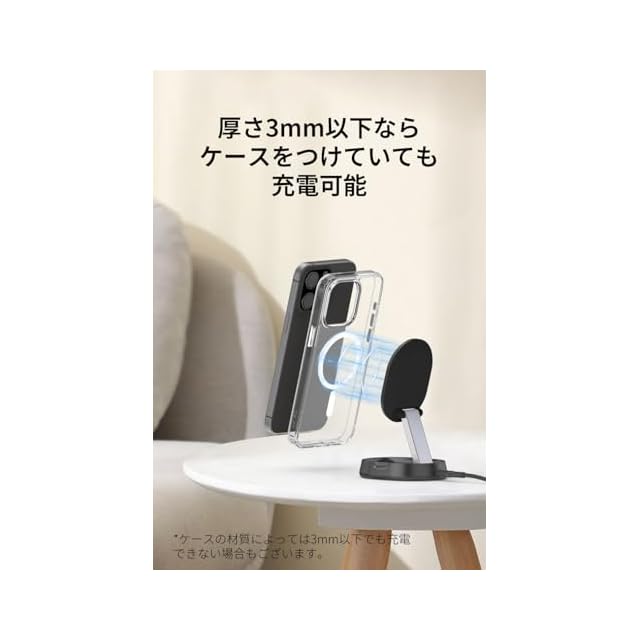 対応モデル:iPhone 12以降のMagSafeに対応するiPhone及びQi2規格対応Android *最大15Wの出力でのワイヤレス急速充電は、iOS 17.2をインストールしたiPhone 13以降のモデルのみ対応