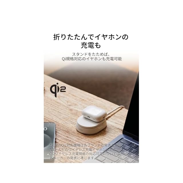 【AirPodsの充電も】パッドモードでは従来のQi充電に対応するAirPodsやワイヤレスイヤホンも置くだけで簡単に充電いただけます