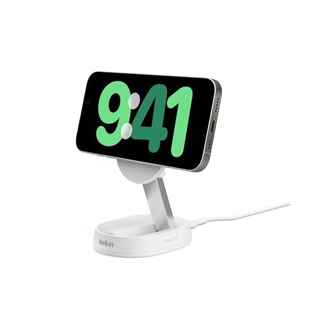 Belkin Qi2ワイヤレス充電スタンド Qi2/MagSafe対応 Qi2公式認証 iPhone 16/15/14/13/12/Qi2対応スマートフォン(最大15W高速充電) スタンド&パッド切り替え 角度調整 コンパクト 持ち運び iOSスタンバイモード対応 USB-Cケーブル付属(1.5m) AC電源アダプタの付属なし ホワイト WIA008btWH | TREND DESIGN 家電専門店
