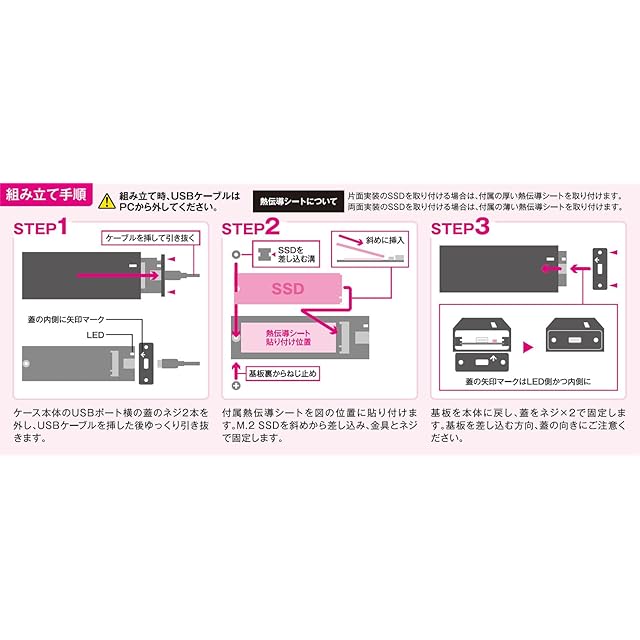 ✅付属品:USBケーブル2本(Type-C to C&Type-A to C)、SSD固定用金具、SSD固定用ネジ、熱伝導シート2枚(薄板/厚版)、ドライバー
