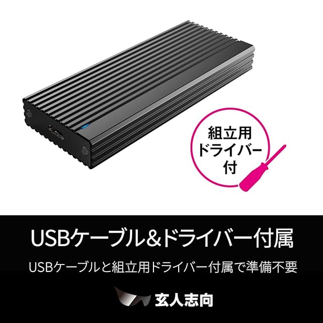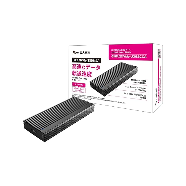 商品名:玄人志向 USB3.2 Gen2 (10Gbps) 接続 M.2 NVMe SSDケース GWM.2NVMe-U3G2CCA
