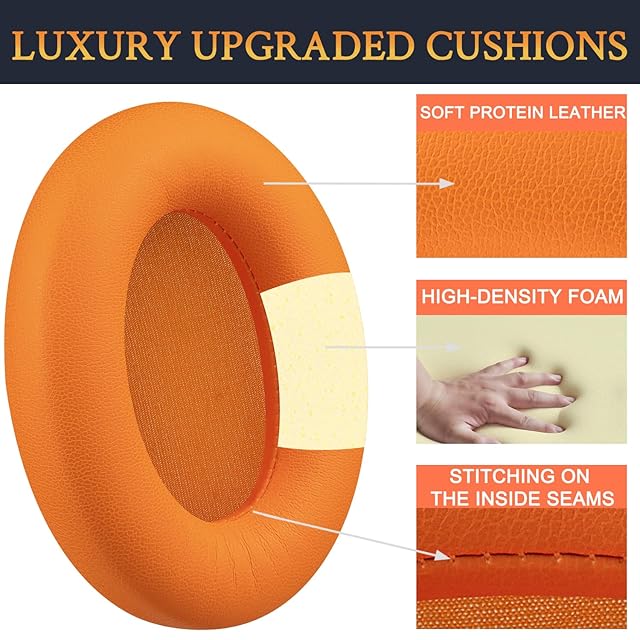 SOULWIT イヤーパッド イヤークッション 交換用 Sony WH-1000XM3 (WH1000XM3)オーバーイヤーヘッドフォン に対応 ヘッドパッド 柔らかいプロテインレザー ノイズアイソレーションメモリーフォーム イヤーカップ 厚みを追加 耳当て (オレンジ) | TREND DESIGN 家電専門店