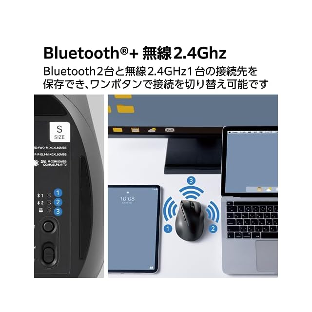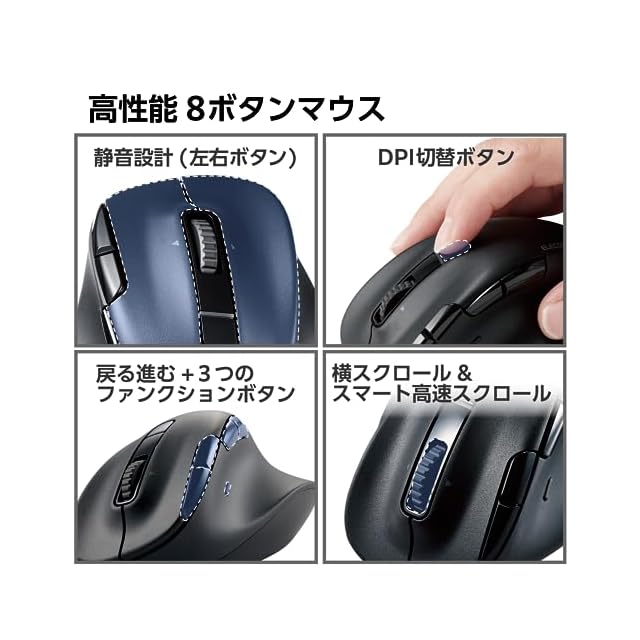 商品名:エレコム ワイヤレスマウス 静音 EX-G PRO Sサイズ Bluetooth 無線2.4GHz 両対応 充電式 8ボタン 高速スクロール チルトホイール 抗菌 ブラック M-XGS50MBSKBK
