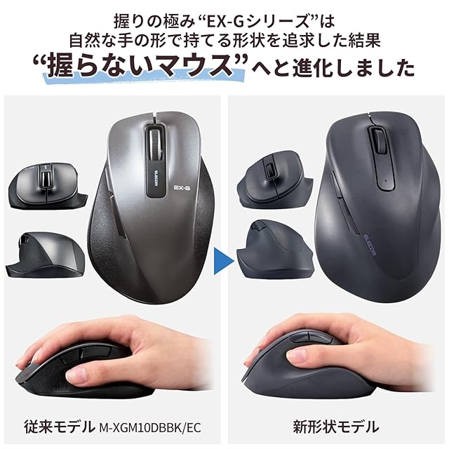 医師との共同開発により究極の握り心地を実現した5ボタンマウス“EX-G"。
