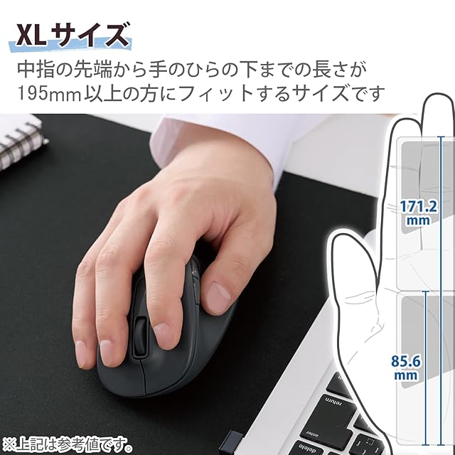 商品名:エレコム マウス ワイヤレスマウス EX-G 無線2.4GHz 静音 XLサイズ 5ボタン 「AskDoctors評価サービス」認証 抗菌 ブラック M-XGXL30DBSKBK