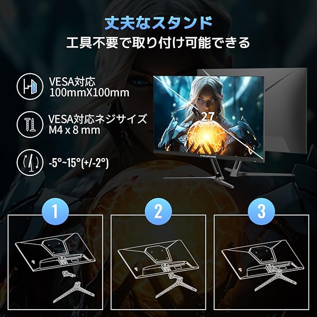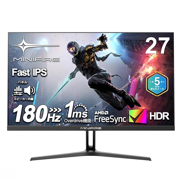 商品名:Minifire ゲーミングモニター27インチIPSパネル最大180Hz FHD 1080p HDR10 sRGB 120% 300cd/m² AMD FreeSync 16.7M(8bits) VESA 100*100mm スピーカー内蔵 DP1.4/HDMI2.0ポート (HDMIケーブル付属、MFG27F4S)