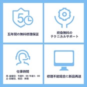 [サポート]5年間の無料修理・ご購入から1か月以内であれば、問題が発生した場合は無償で交換いたします。終身の技術サポートを提供する。無輝点1年・画面上に無輝点が見つかった、製品に関する問題と不明点がございましたら、お気軽にお問い合わせください。