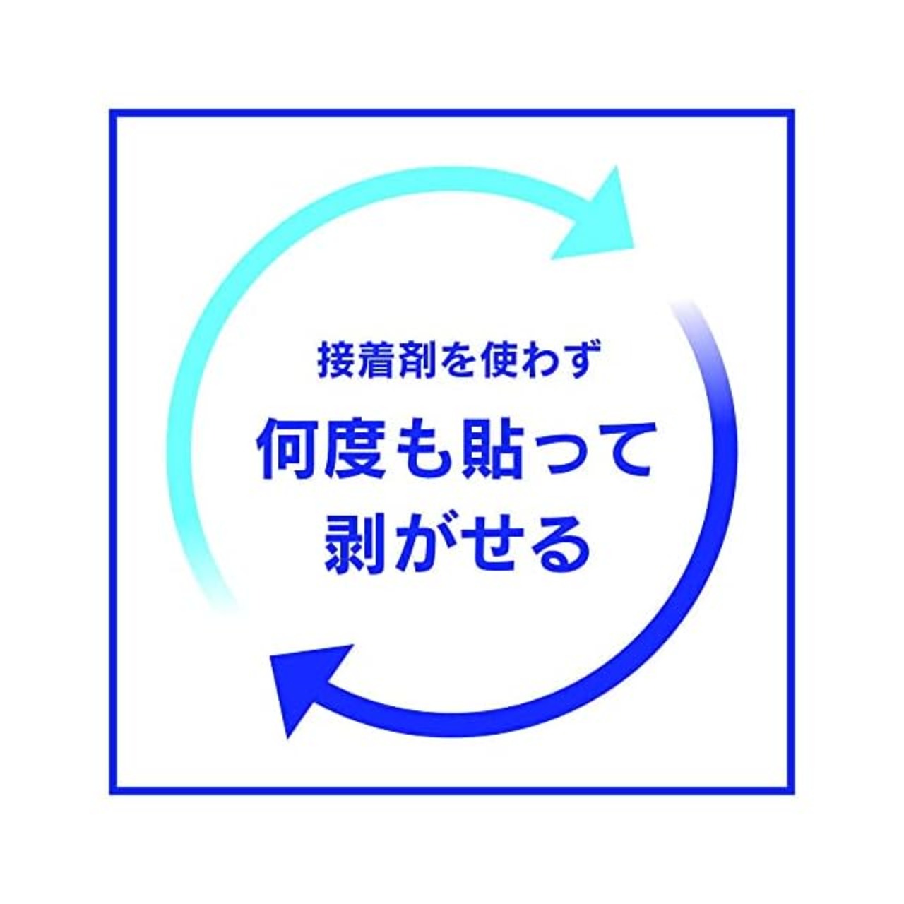 接着剤を使わず、貼り直し可能 接着剤を使わない自己吸着タイプのため、剥がした後に接着剤が残ることがありません。また、貼り直しが可能となっています。