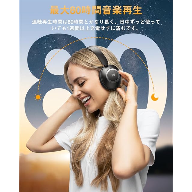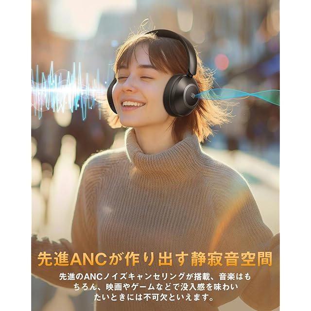 商品名:ヘッドホン【ANCノイズキャンセリング&HIFI音質】ワイヤレスヘッドホン Bluetooth5.3 有線 無線 両用 最大80時間再生 マイク内蔵 ハンズフリー通話 マルチポイント対応 快適装着 軽量 オーバーイヤーヘッドホン 音漏れ防止 折り畳み可能 TELEC認証 日本語ガイダンス