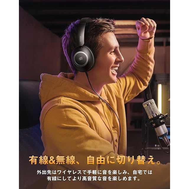 【マルチポイント対応・有線無線両対応】マルチポイント対応で2台のデバイスに同時接続が可能なので、仕事用とプライベート用の使い分けや、WEB会議中の電話対応など、多くのシーンで活用でき便利です。有線無線両用ヘッドホンなら、外出先やコードにわずらわされたくないシーンではワイヤレスで手軽に音を楽しみ、自宅では有線にしてより高音質な音を楽しむといったように使い分けられるので便利です。※有線接続時にANCノイズキャンセリングモードはご利用できません。