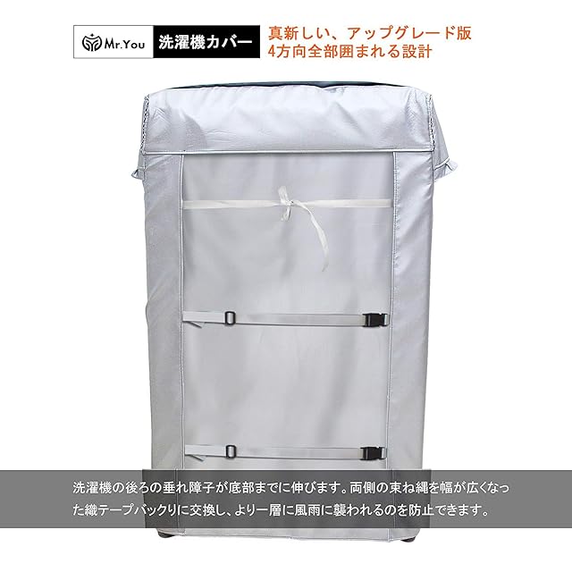 商品名:[Mr.You]洗濯機カバー 【デザイン改良】 4面包みデザイン シルバー 台風対応 防水 防塵 日焼け止め バックルつき(S 52*52*86)