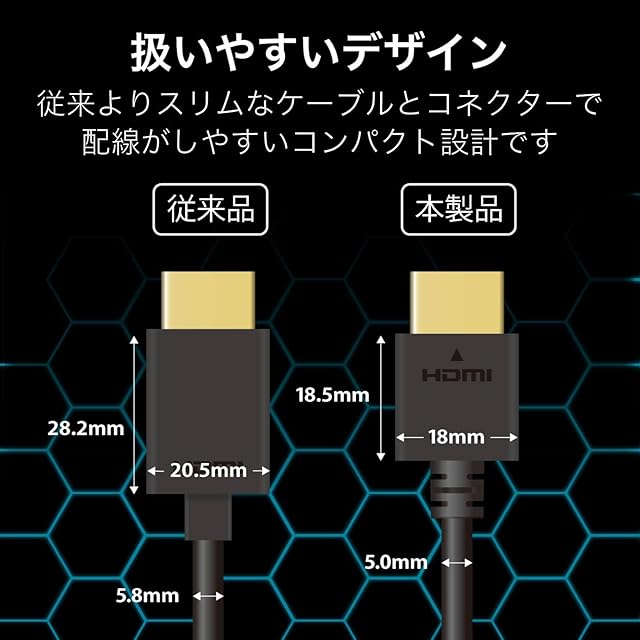従来品よりも最大約22%細径化したスリムケーブルを採用しています。