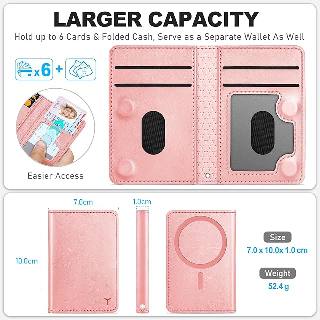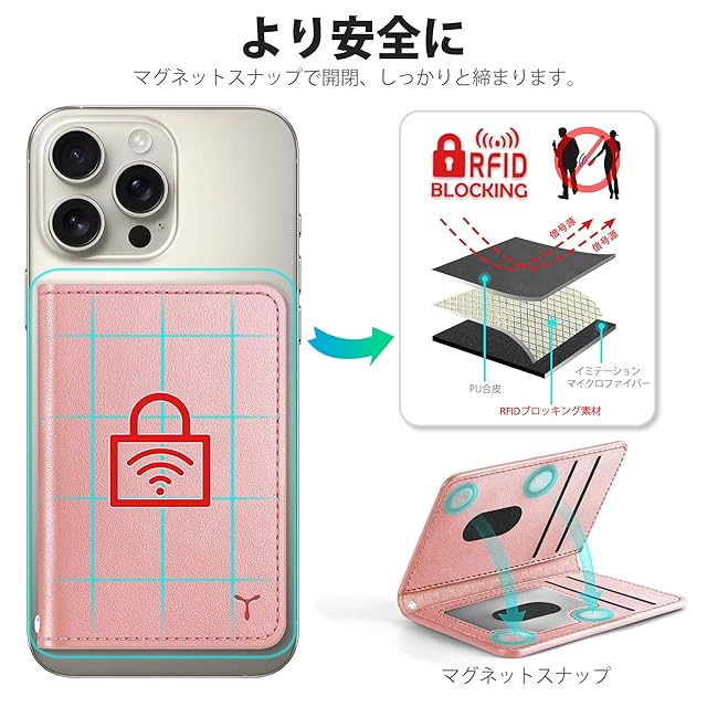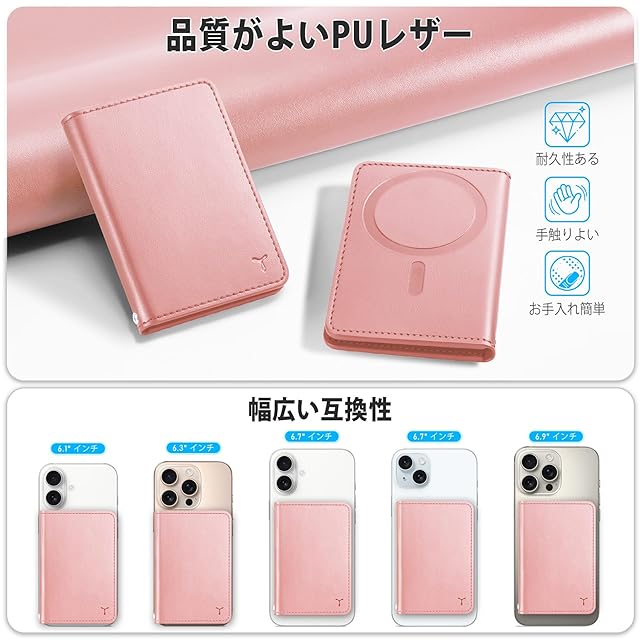 [TUCCH] スマホカードケース 磁気吸着 6枚カード収納 [RFIDブロッキング] PU合皮 脱着簡単 軽量 背面 カードウォレット 磁気ウォレットケース iPhone 16/15/14/13/12シリーズ対応 ローズピンク | TREND DESIGN 家電専門店
