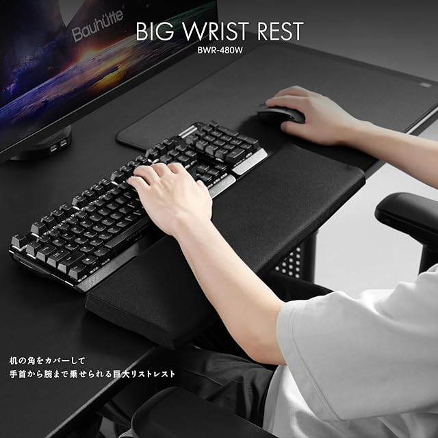 商品名:Bauhutte (バウヒュッテ) ビッグ リストレスト エッジカバー BWR-480W-BK 巨大 手首から腕まで乗せられる マウスパッド アームレスト パームレスト 肘置きクッション