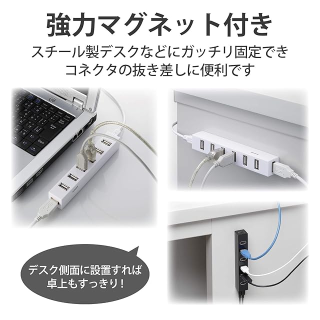 商品名:エレコム USB2.0 ハブ 7ポート ACアダプタ付 セルフ/バス両対応 個 マグネット付 1.5m ブラック U2H-Z7SBK