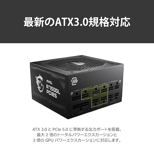商品名:MSI 750W自作PC電源ユニット MAG A750GL PCIE5 (80PLUS GOLD PCIe5.0/ATX3.0ネイティブ対応)PS1326