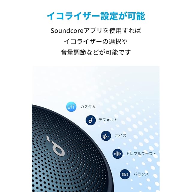 アプリに対応:Soundcore Mini 2では非対応だったSoundcoreアプリに対応。アプリを使用すれば、イコライザーのカスタマイズや音量調節、電源オフの操作などが可能です。