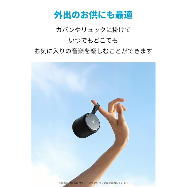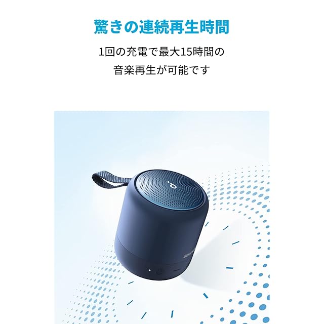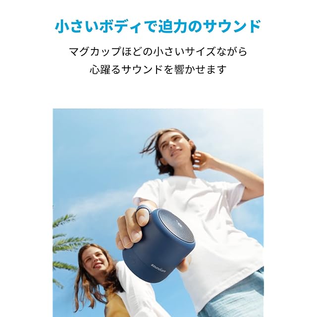 Soundcore | Hear It. Feel It.<br> 「Soundcore」は、Ankerで培ったノウハウやバッテリー技術を受け継ぎながら、最先端のオーディオテクノロジーを駆使し、こだわりの音の体験を提供するオーディオブランドです。<br><br> 主な製品仕様<br> 重量:約230g<br> 防水規格:IPX7(※一時的(30分)に一定水深(1m)の条件に水没しても内部に浸水しないと定義されています。)<br> 通信方式:Bluetooth 5<br> オーディオ出力:6W<br>入力:5V = 1A<br><br> BassUpテクノロジー<br>Soundcore独自のBassUpテクノロジーにより、低音をより力強く、より鮮明に響かせます。<br><br> 外出のお供に<br>カバンやリュックなど様々なところに掛けて、いつでもどこでもお気に入りの音楽を楽しむことができます。<br><br> アプリでイコライザーをカスタマイズ<br>Soundcore Mini 2では非対応だったSoundcoreアプリに対応。アプリを使って利用シーンやお好みに合わせてイコライザーをカスタマイズすることができます。イコライザーはデフォルトモード、ボイスモード、トレブルブーストモードまたはバランスモードから選択できます。<br><br> PartyCast機能<br>同時に100台以上のSoundcore Mini 3もしくはPartyCast対応のスピーカーをとペアリング可能。複数台をペアリングすれば迫力のあるサウンドを楽しめます。<br><br> 安定した接続を実現<br>Soundcore Mini 3はBluetooth 5を採用しており、安定した接続を可能にします。<br> <br> USB-Cポート採用<br>充電ポートにスマートフォンやノートPCなどで広く採用されているUSB-Cポートを採用。端子の形状が対称なため、向きを気にせず簡単に充電できます。<br><br>