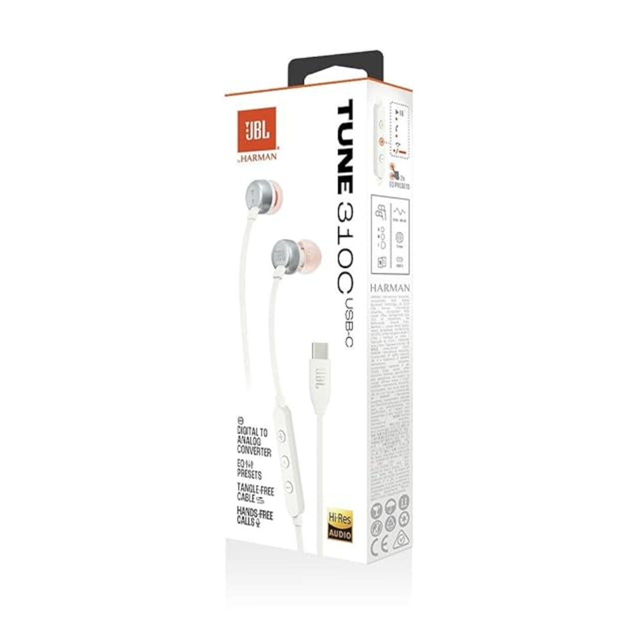 JBL TUNE310C USB Type-C 接続 イヤホン 96kHz/24bit DAC内蔵/通話可能マイク付き3ボタンリモコン/フラットケーブル/3種のプリセットイコライザー搭載/ハイレゾ/9mm径ダイナミックドライバー/ホワイト/JBLT310CWHT | TREND DESIGN 家電専門店